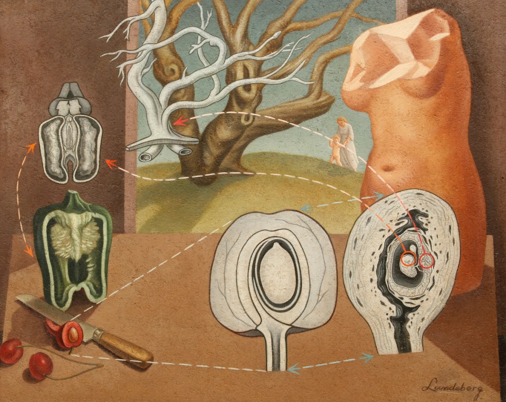 Lundeberg represents a very early, explicit articulation of injecting narrative structure and analysis into surrealism. It’s an entirely personal choice as to whether this is something you prefer to the original illogical focus of the genre, or whether you find this interpretation to be a devolution of the concept. Either way, it’s undoubtedly a concept that heavily influences our contemporary understanding of surrealism, and indeed, I see neo-surrealism as simply the marriage between the two manifestos under the umbrella of modern influences e.g. technology, attitudes towards sex and hierarchical/political structure etc.