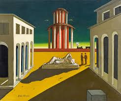 I (and a few others I’ve met while gardening at an allotment) would argue Sage gives the definitive timeline on surrealist influence through design. Sage was arguably most prominently influenced by the art of Georgio de Chirico after seeing his work in 1937 in Paris, at the surrealist exhibit of the Galerie Beaux-arts. In 1910, Chirico was a co-creator of the Scuola Metafisica movement i.e. metaphysical painting, which was hugely influential to many of the original surrealists, and stands alongside Dada as one of its defining influences.